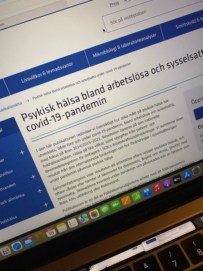 Har ägnat dagen åt diverse saker som jag har haft hängande efter mig. Fick ändå tid att läsa diverse rapporter och artiklar på nätet. I förrgår släppte Folkhälsomyndigheten en rapport om psykisk ohälsa bland arbetslösa och sysselsatta under covid-19 pandemin (se rapport här). Läste den som hastigast. Psykisk ohälsa påverkar livet i sin helhet och medför stora kostnader, både i termer av mänskligt