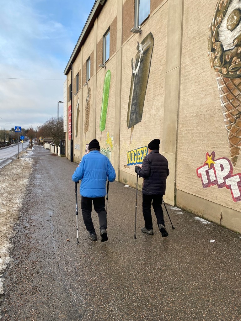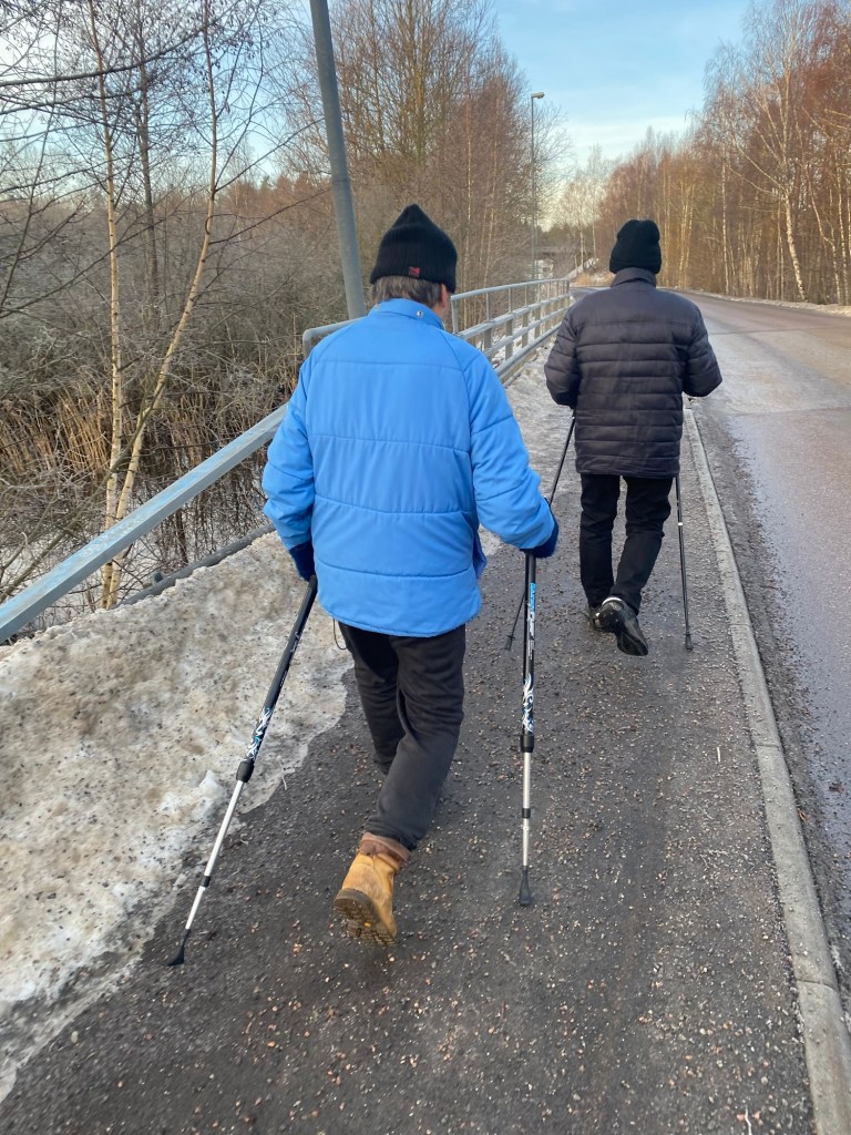 Passar på att vara medvandrare längs min Fars och Farbrors dagliga vandringar under mina dagar här. De har under flera år gått runt omkring Flen på olika rundor. Alltid samma rundor. På måndagar är det Löten och Jättuna-rundan. På tisdagar går Far på morgongymnastik i sporthallen, men om han inte gör det tar de Solstugevägens runda i skogen. På onsdagar går de runt Brogetorp och Orresta. På torsdagar blir det ut till Ekborgen och upp till Värmeverket och tillbaka. På fredagar blir det Lida-rundan förbi Stenhammars slott. Under helgen vilar de. Så här har det pågått under flera år. Ibland blir det inhibitation för andra inbokade aktiviteter eller alltför ihållande regn, men annars går de där, vandrandes sida vid sida, bröderna.