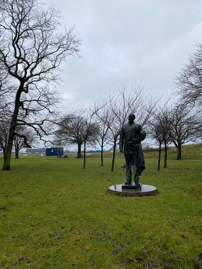 Jag grubblar vidare när jag springer förbi statyn av Limhamnskungen (RF Berg) längs strandpromenaden. När jag skrev min första roman så tänkte jag mycket på Limhamnskungen. Han gjorde otroligt mycket för Limhamns utveckling för över 100 år sedan, han dog exakt på samma dag som den svenska konungen Oscar II. Ödets ironi att två konungar avlider samma dag. Limhamnskungen levde verkligen bland människorna, men funderade han något på SÅ någon gång? Hur han skulle leva bland människor på bästa sätt.