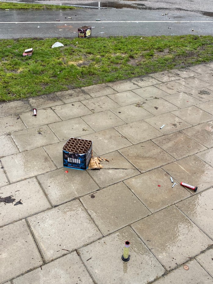 När mina löpsteg tar mig från vår lägenhet ned till de nya kvarteren runt Ön och Limhamns hamnområde så ser jag förödelsen från nattens firande ligga i nästan varje korsning. Där har raketrester lämnats och i vissa fall stora lådor. Det är som om ägarna tänkte sig att betalningen i form av fyrverkerier även inkluderar att butikspersonalen följer med och städar upp efter dem. Jag stannar till i vissa korsningar och lyfter de största lådorna upp på närmaste trottoar. När jag fortsätter mina löpsteg funderar jag vidare. Vill jag leva SÅ här bland människor? Skjuta raketer och fira och sedan låta resterna ligga kvar?