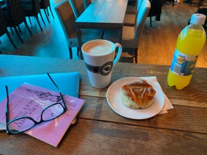 Går mot mitt favorithak här i Limhamn för att sätta mig och skriva och plugga. Försöker att tänka efter när jag senast var där med det här syftet. Måste ha varit förra hösten innan den svenska större nedsstängningen skedde. Det är fortfarande långt mellan borden, så det känns coronasäkert.