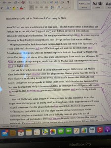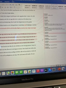 Redigeringen och bollandet mellan redaktör och författare har skett i word och med spåra ändringar samt kommentarsfält som viktigaste verktyg. Här nedan visas två sidor från respektive manus där redaktör föreslagit ändringar.
