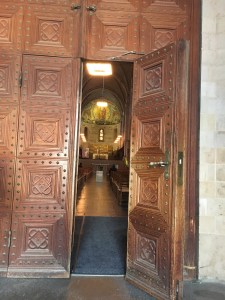Jag öppnar den pampiga porten av brons och kommer in i ett förrum. Därefter öppnar jag innerdörren och möter det ståtliga kyrkovalvet och ser ända fram till den upphöjda delen i bortre delen av kyrkan.