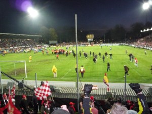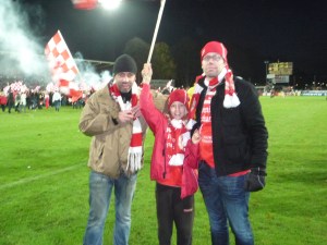 Dagen efter gör Elfsborg sitt när de slår Halmstad med 3-0. Nu hängde allt på sista matchen. Vi behövde vinst eller oavgjort mot Halmstad. Vid förlust hängde det på målskillnad. Elfsborg behövde vinna mot Gefle. Naturligtvis åkte jag, min elvaåriga dotter och mina två bröder till Örjans vall. Det är den 9:e november. Ruggigt höstväder men vad gjorde det. Jag skulle få se mitt älskade Kalmar spela en avgörande match om SM-guldet. Jag låter bilderna tala för sig själv. Det var en utomjordisk upplevelse. För evigt inristat i mitt hjärta.