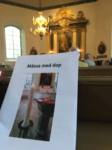 Jag är aningen försenad och får ta bilen till kyrkan. Döm om min förvåning men på parkeringsplatsen är det nästan fullt med bilar. Normalt sett brukar vi bara vara en handfull kyrkobesökare och jag förstår instinktivt att det är Gudstjänst med dop. Mycket riktigt så får jag uppleva ett dop för lilla Selma under Gudstjänsten och min förhoppning om prästens predikan kring Ordet grusas. Det gör nu inget då dop är ett av de mer underbara händelserna en människa kan få uppleva, även om det i det här fallet är dop för en familj som är mig främmande.