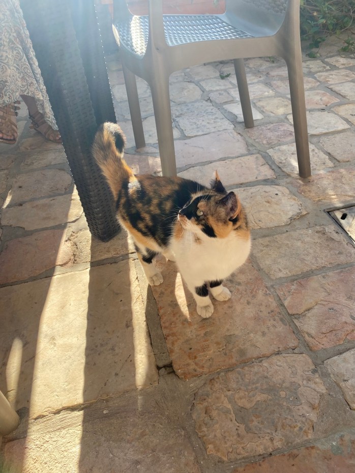 Under 12 dagar skulle katten vara min följeslagare. Redan efter den första morgonjoggen stod katten där på trappan till Tabors hus och till synes väntade på mig.