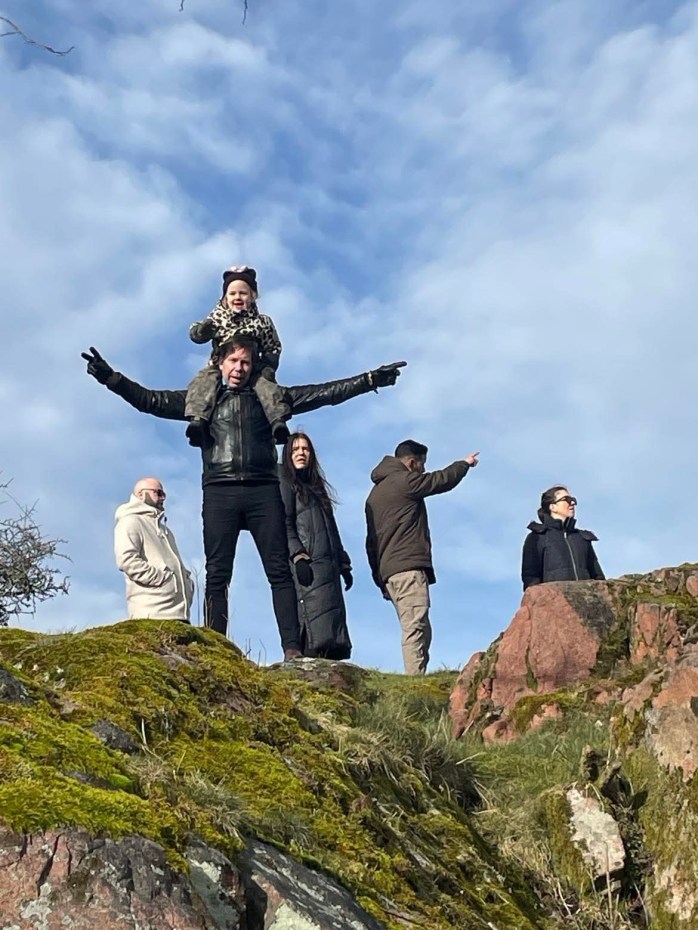 Är på Bohus fästning och går omkring tillsammans med släkt och vänner. Har bonusbarnbarnet Isabelle på axlarna och vi njuter av livet. Vi sjunger lite och vi pratar om fästningen. Jag berättar om freden i Roskilde 1658 och dess konsekvenser, vilket bland annat innebar att den här fästningen blev svensk. Jag berättar om pietisten Thomas Leopold som satt fängslad här i 32 år på 1700-talet. Isabelle vill helst sjunga men är snäll och lyssnar på mina historieberättelser.