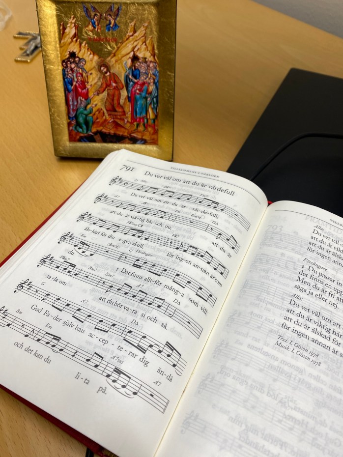 När jag hör dessa självtvivel som förmedlas från människor om sig själva eller när jag får upp sådana tankar om mig själv brukar jag sjunga några rader ur Psalm 791 Du vet väl om att du är värdefull. Det måste vara en av de mest populära psalmer som sjungs på dop och säkert sjungs den även i nästan alla konfirmandgrupper. Den är oerhört vacker. I all sin enkelhet har den enbart två verser men refrängen sjungs tre gånger. Den går så här: